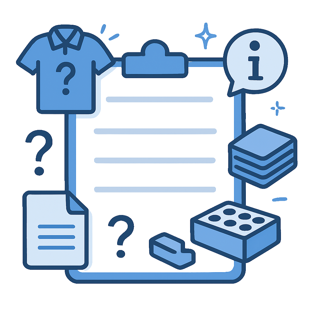 - Anything non-negotiable – colours, garment type, budget, or special requests